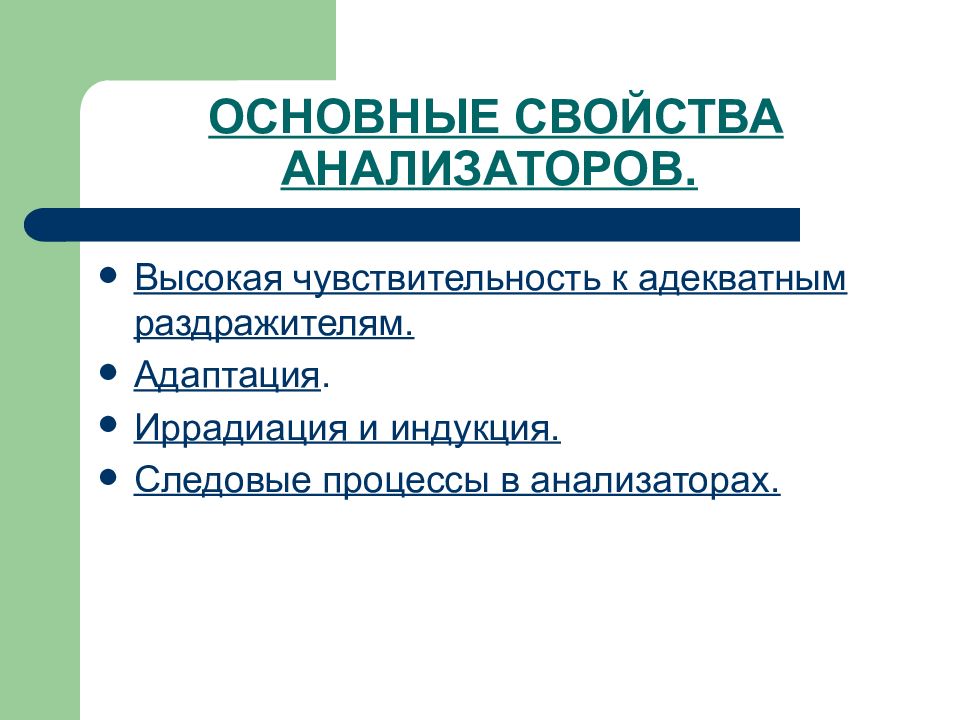 Свойства Анализаторов Физиология