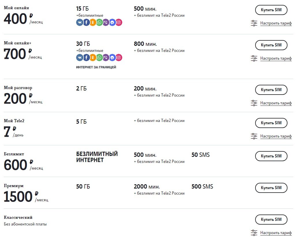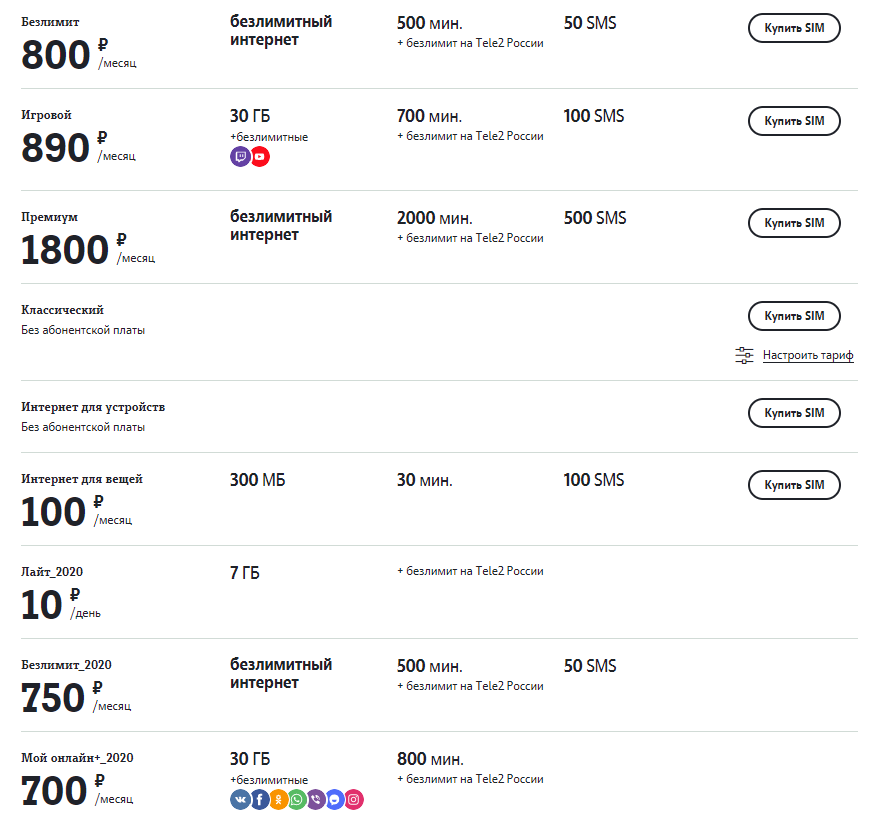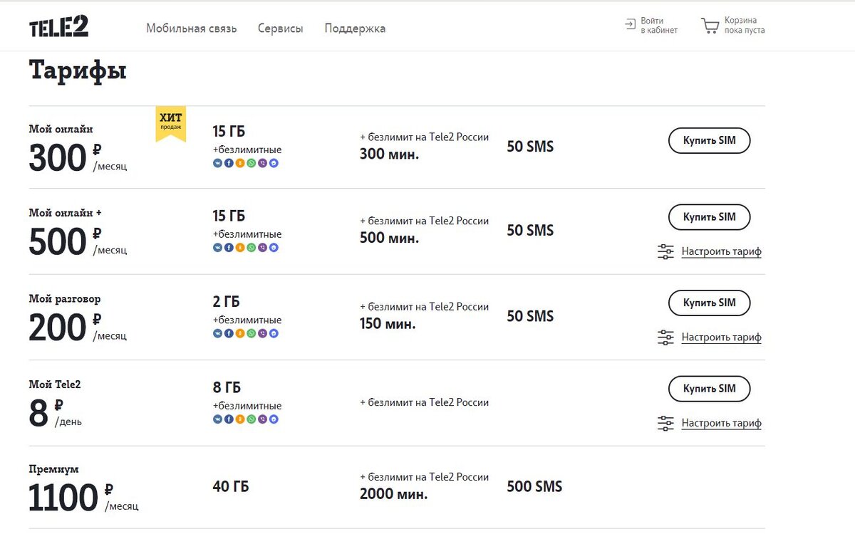 Архивные Тарифы Теле2
