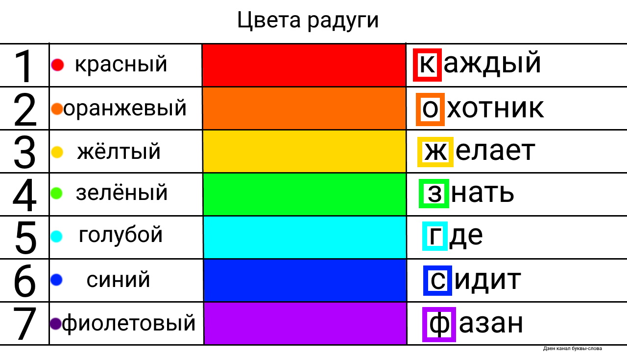Цвета Радуги В Алфавитном Порядке