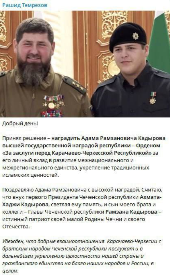 Адаму Кадырову Вручают Медаль