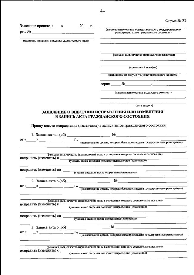 Заявление О Внесении Изменений В Актовую Запись О Рождении