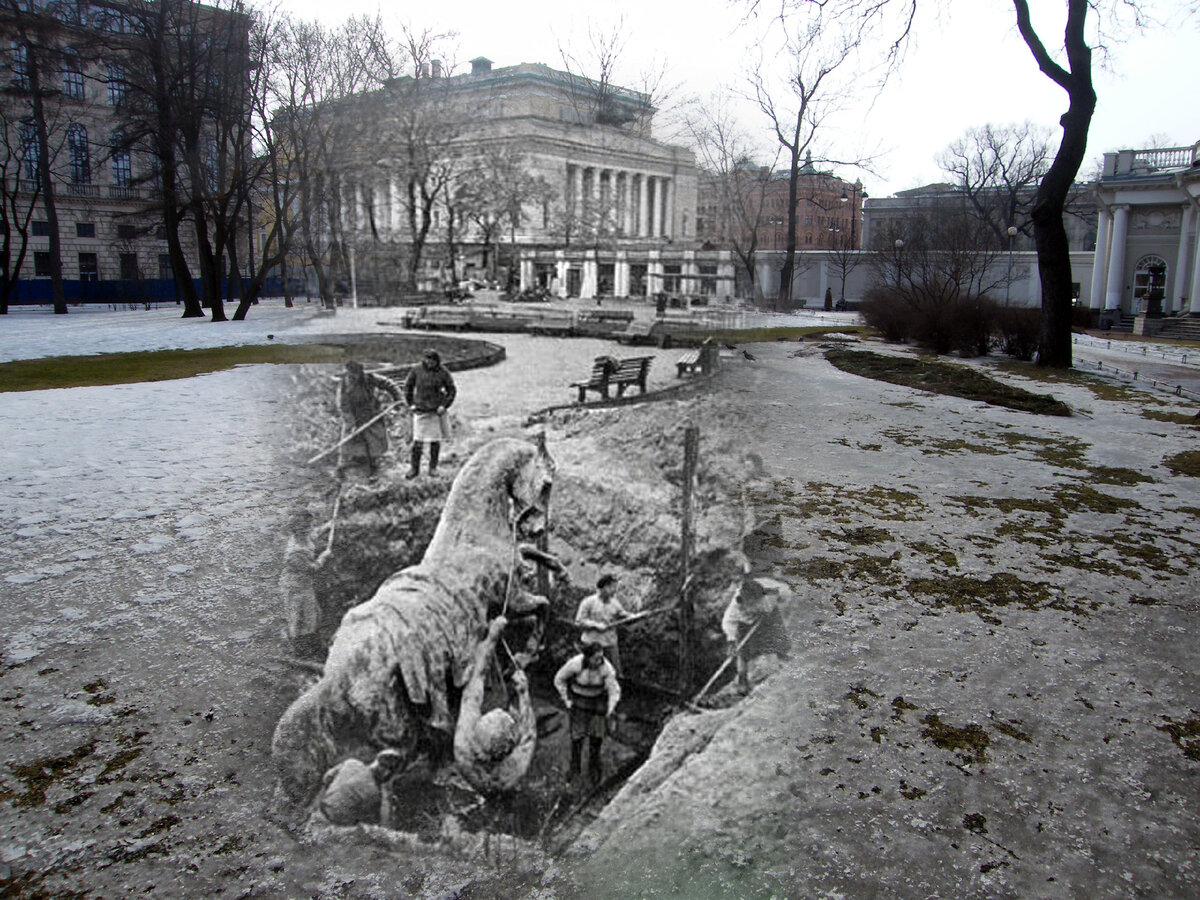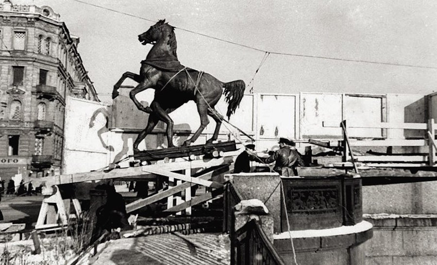 Кони Аничкова Моста В Блокаду Ленинграда