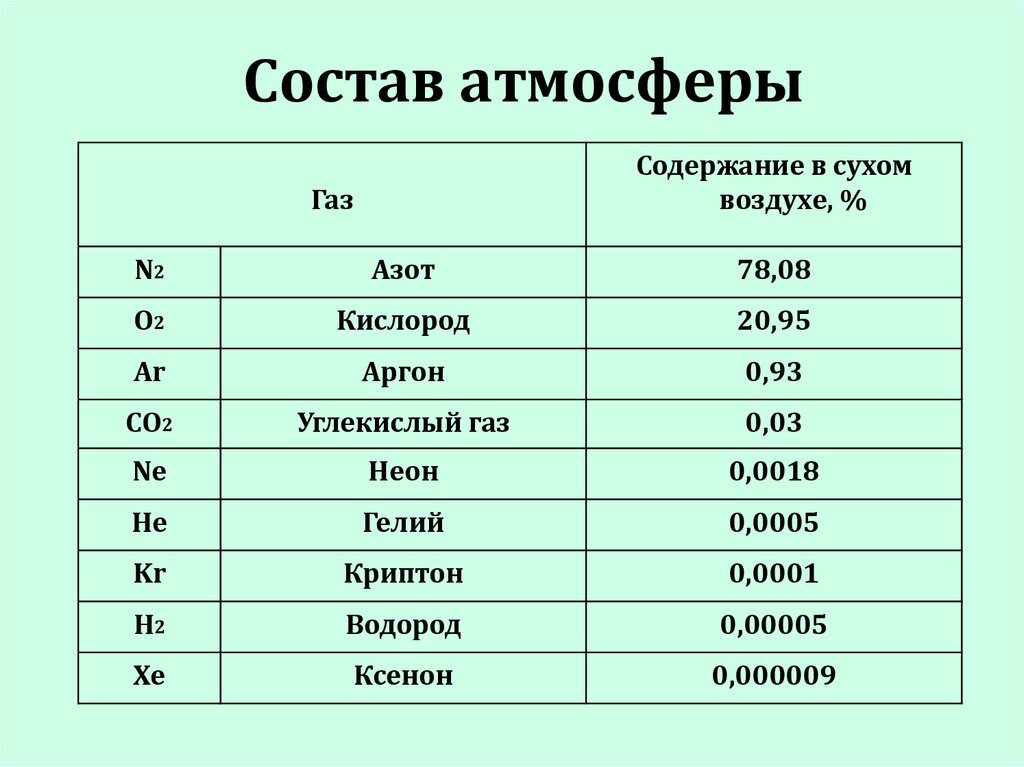 Состав Атмосферного Воздуха В Процентах