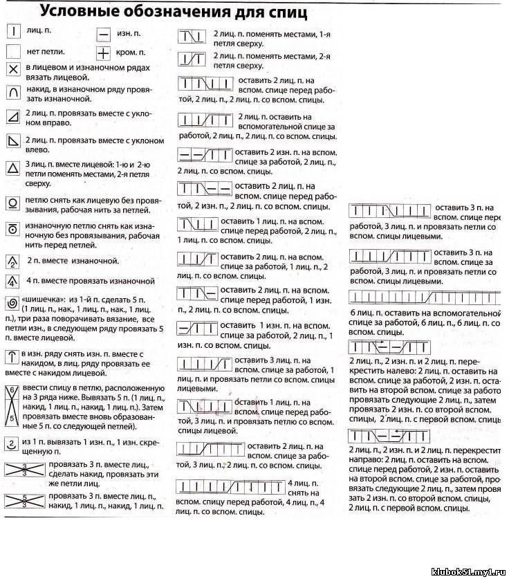 Условные Обозначения Вязания Спицами Для Ажурных Узоров
