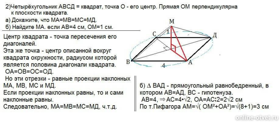 Авсд Квадрат Диагонали Которого Пересекаются В Точке О Ан Перпендикуляр К Плоскости Квадрата