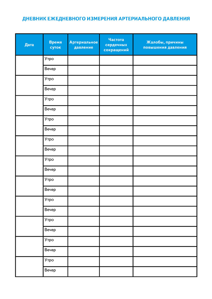 Дневник Контроля Артериального Давления Таблица Скачать