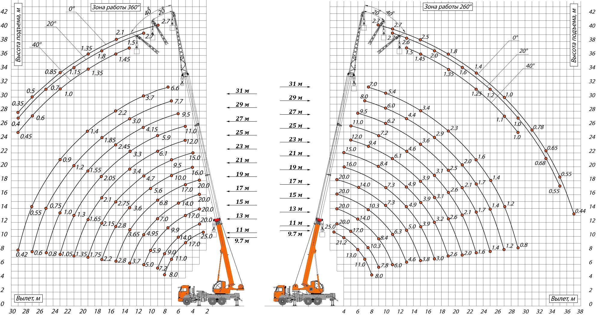 Характеристики Автокрана 25 Тонн
