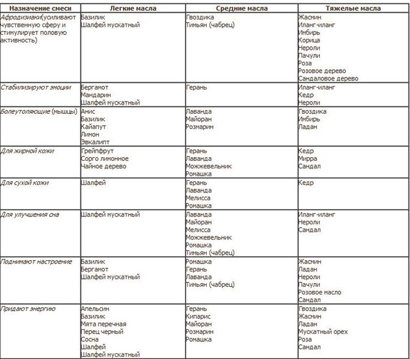 Ароматерапия Эфирные Масла Таблица Свойства И Применение