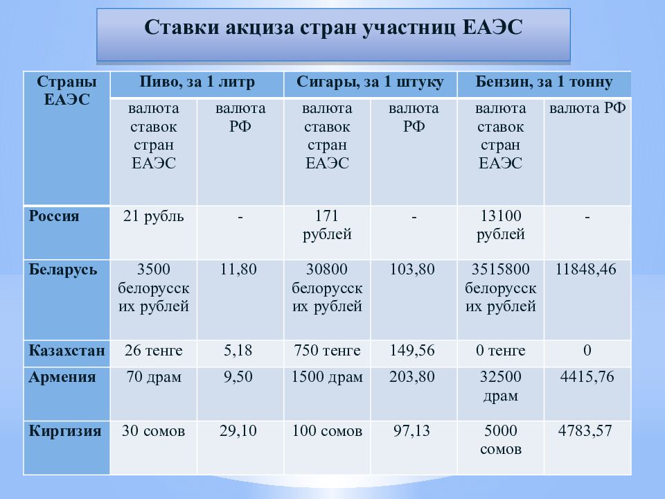 Акцизы Ставки